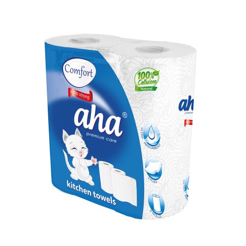 Ręczniki kuchenne aha Premium Care to papierowe artykuły jednorazowego użytku wykonane z najwyższej klasy bibuły higienicznej, które doskonale sprawdzają się w utrzymaniu porządku w kuchni. To produkt wyjątkowo wytrzymały pozwalający błyskawicznie uporządkować kuchenny blat, jak i zadbać o czystość szafek czy też stołu.